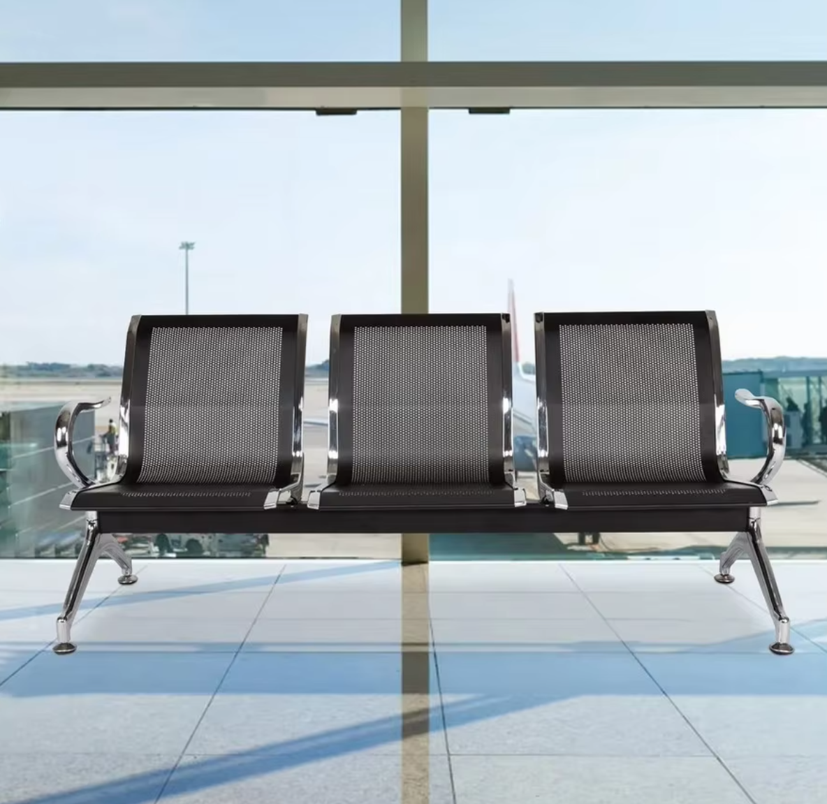 Strong Construction: The heavy-duty metal frame provides lasting durability in high-use areas. The perforated seats enhance airflow, keeping users comfortable during long waits.
