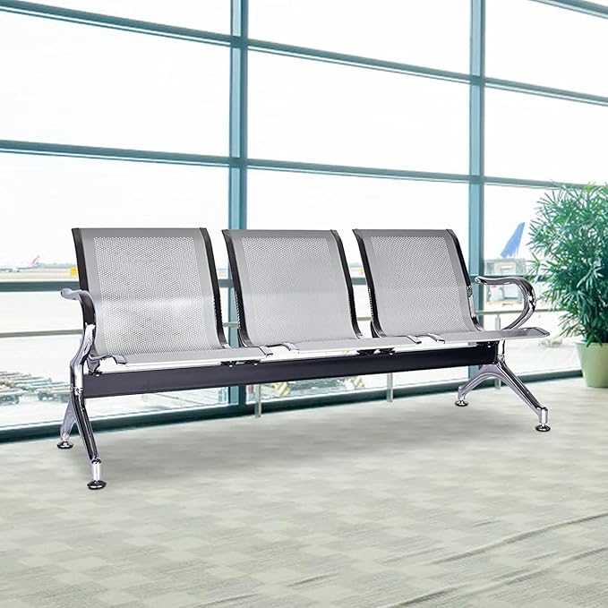 This modern 3-seater office waiting bench features durable stainless steel construction, perforated breathable seats, and a sleek chrome finish. Its ergonomic design, including armrests, ensures comfort, making it ideal for reception areas and waiting rooms.WhatsApp us -