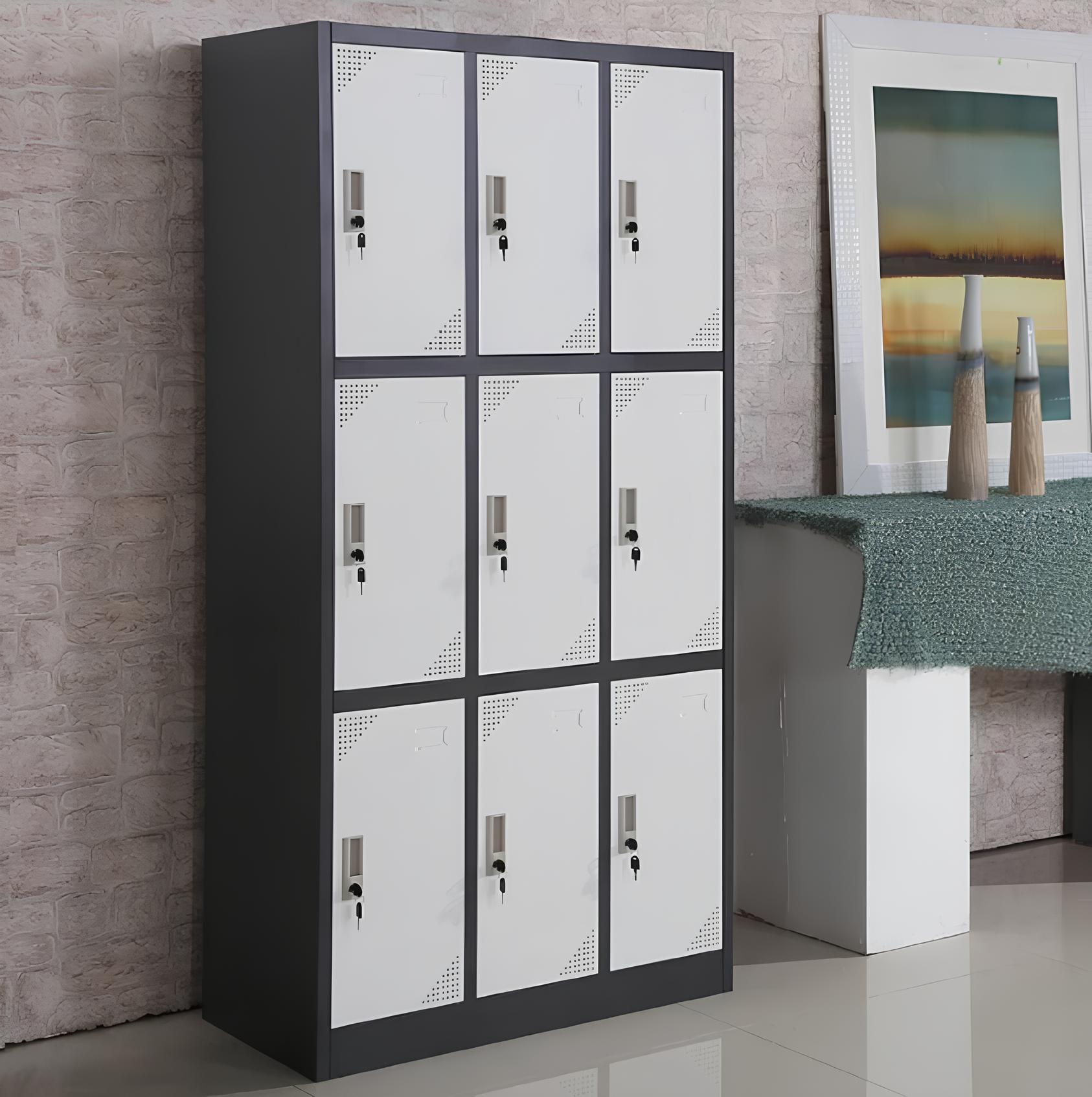 With its compact design, the cabinet fits neatly into various office settings. Whether you place it in a hallway, breakroom, or storage area, the 9 locker cabinet maximizes available space while offering ample storage options.