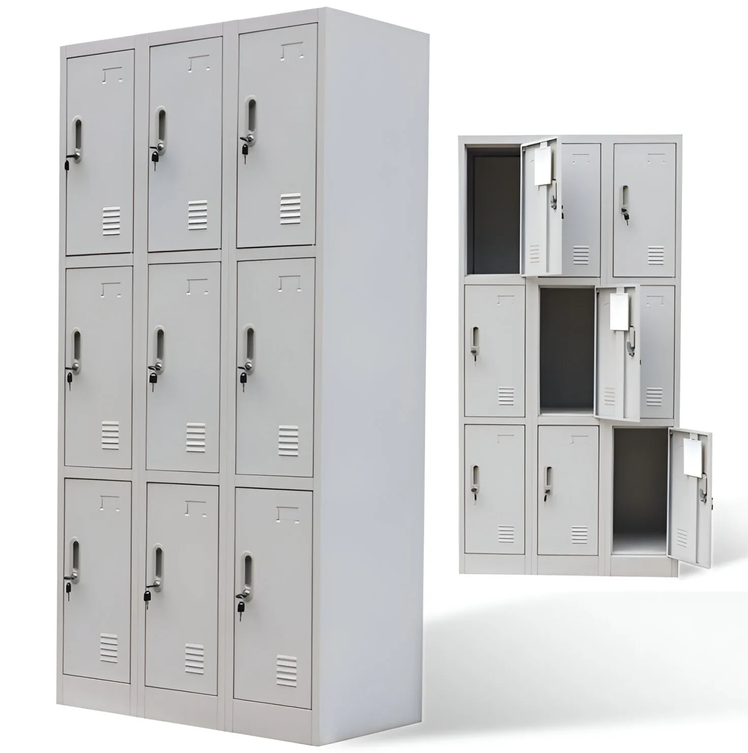 - Nine Individual Lockers: Each locker provides ample storage space, ideal for personal items, office supplies, or gym equipment.