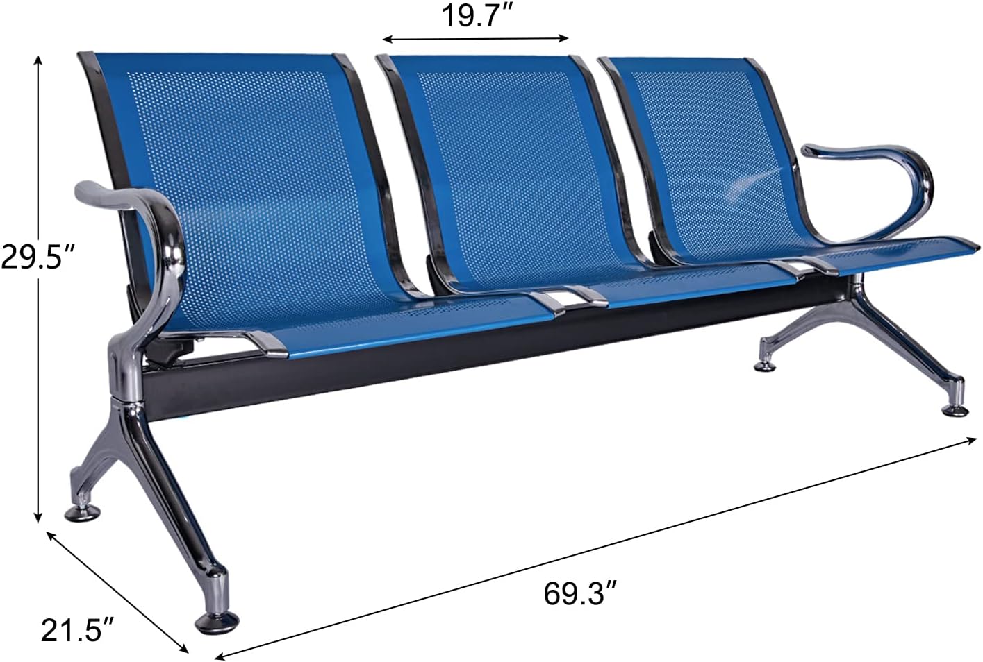 Discover the Airport 3-Seater Metallic Office Bench, perfect for busy places like airports, offices, and public areas. This bench boasts a strong metallic frame that ensures it can withstand frequent use, while the bright blue mesh fabric adds a modern touch to any space.