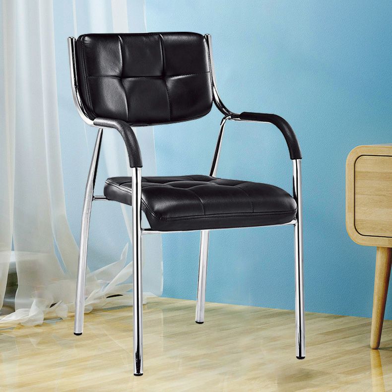 The chair features a sleek silver steel frame that adds a contemporary touch to any office. The faux leather upholstery is both stylish and easy to maintain.