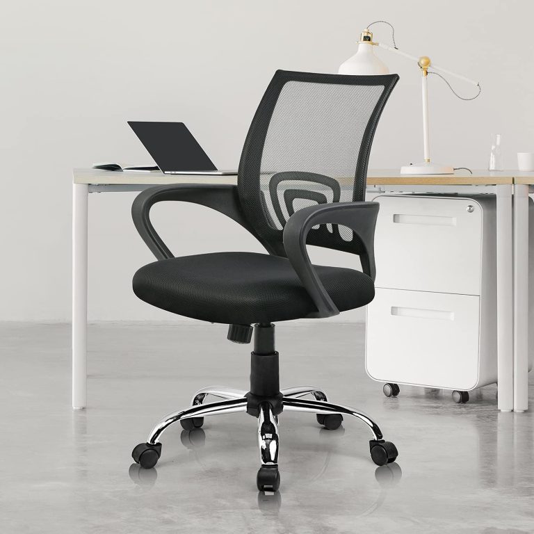 The chair features a sleek black color that complements various office decor styles. Its ergonomic design includes a mid-backrest that supports your lower and middle back, reducing strain and enhancing posture. The high-density foam seat cushion provides comfort and support, making it ideal for extended use.