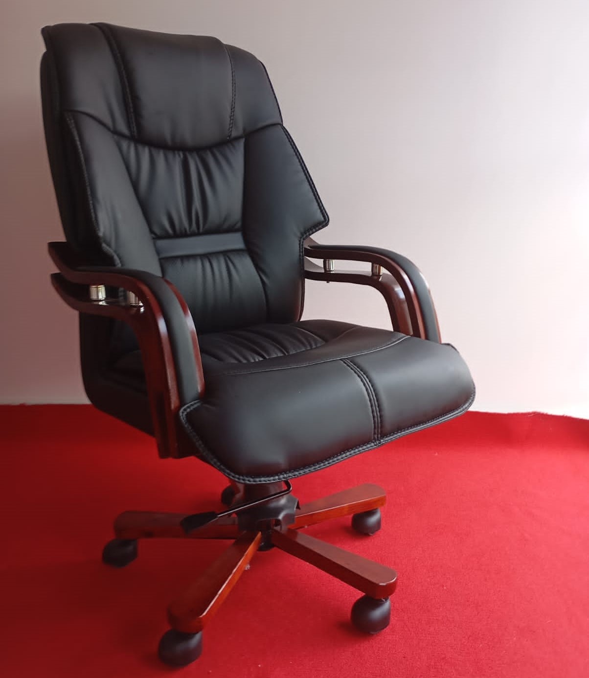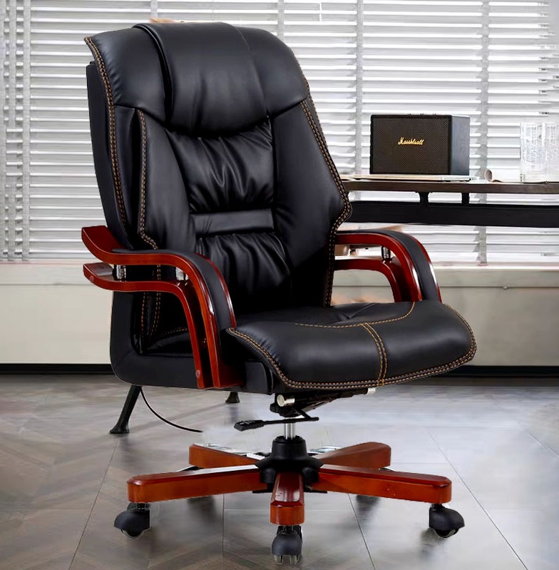 - Design: High-back executive chair with elegant wooden arms, perfect for adding sophistication to any office.