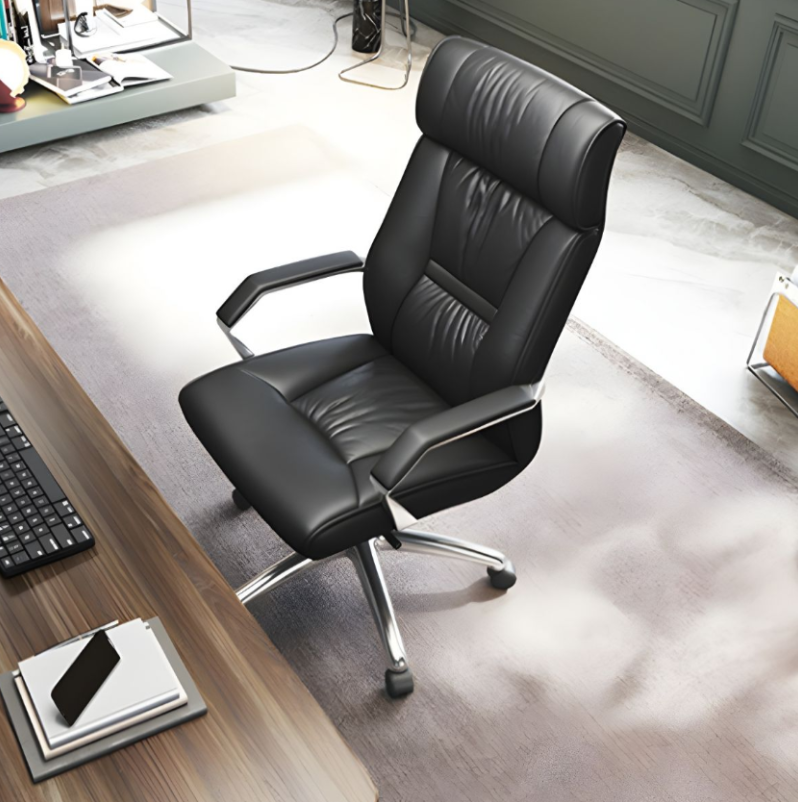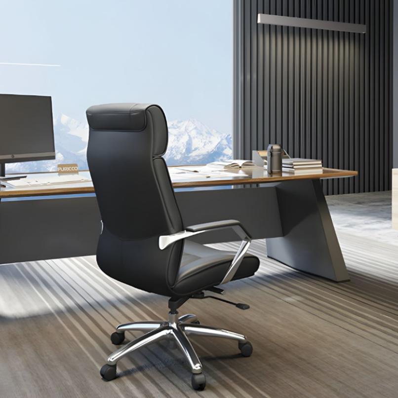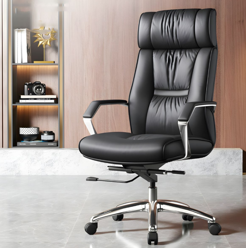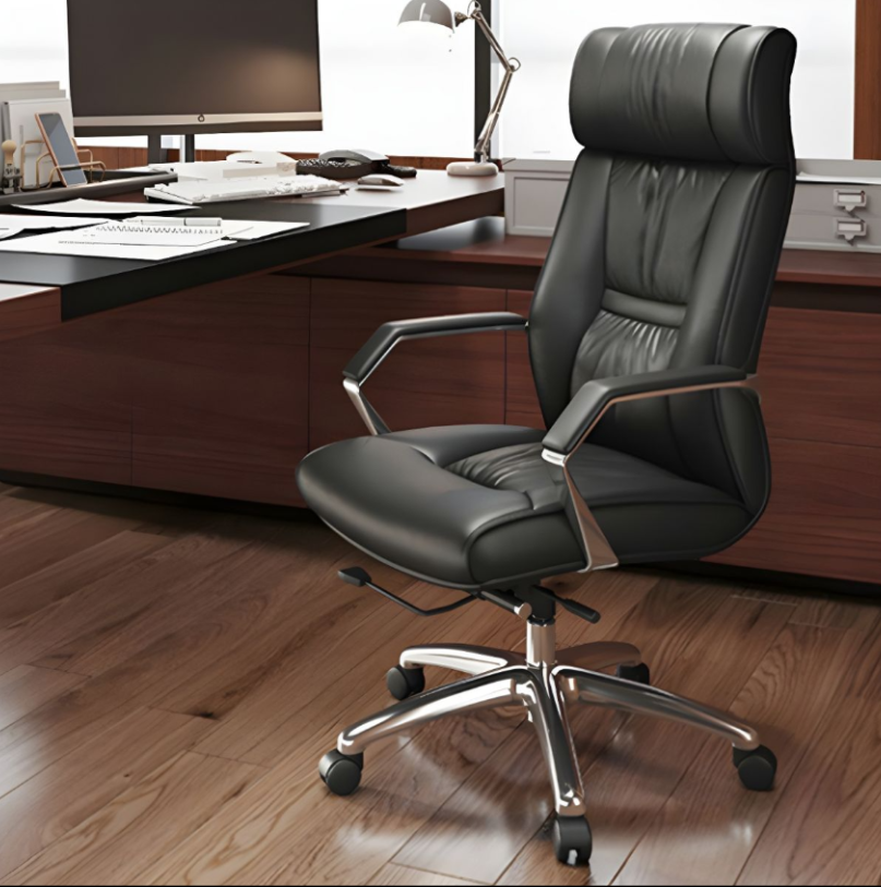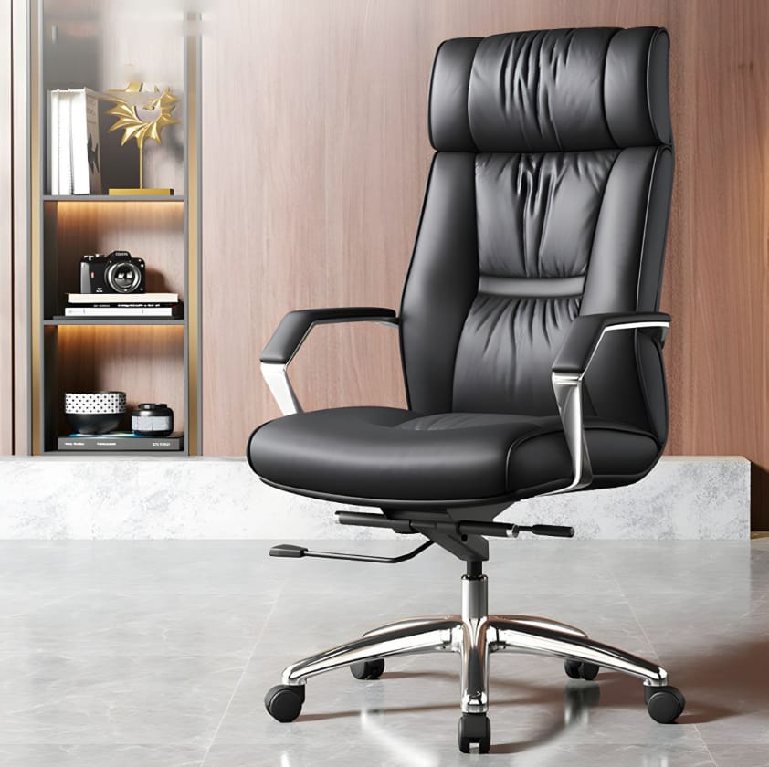 The high back leather office chair adds a touch of sophistication to any workspace. Its sleek leather finish, combined with a high-back design, enhances the aesthetic appeal of offices, executive rooms, or home workspaces.